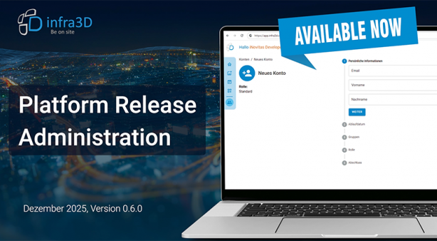 Startseite › Unternehmen › Newsfeed › News News 17.03.2026 Die Stadt Augsburg setzt auf die Digitale Strasse infra3D 06.03.2026 Nürnberg aktualisiert ihre Digitale Strasse infra3D 12.02.2026 Die Stadt Landshut digitalisiert ihr Strassennetz mit infra3D 12.02.2026 Freiburg im Breisgau aktualisiert ihre Digitale Strasse infra3D 06.02.2026 Die Stadt Waldshut-Tiengen aktualisiert ihre Digitale Strasse infra3D 06.01.2026 Jahresrückblick 2025 19.12.2025 Frohe Festtage und ein gutes neues Jahr! 02.12.2025 infra3D Platfom Release: Administration 11.08.2025 Zuschlag der Stadt Berlin - Datenaufzeichnung 2025/2026 10.08.2025 Neuer infra3D NextGen Feature Release verfügbar! 25.07.2025 Die Stadt Böblingen setzt auf die Digitale Strasse infra3D 19.06.2025 Die Stadt Neu-Ulm setzt auf die Digitale Strasse infra3D Seiten1 2 3 4 5 … Neugierig? Jetzt registrieren und die Testversion starten. Hier infra3D kostenlos testen